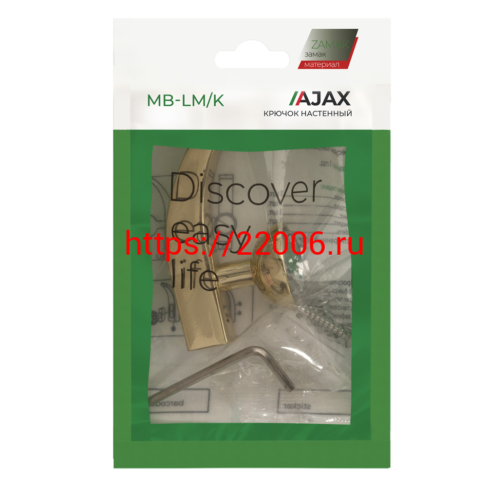 - Крючок Ajax (Аякс) настенный MB-LM/K-004 GP золото в Калуге недорого