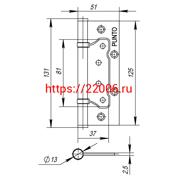 - Петля Punto (Пунто) универсальная без врезки IN5200W-HD AC (200-2B/HD 125x2,5) медь в Калуге недорого