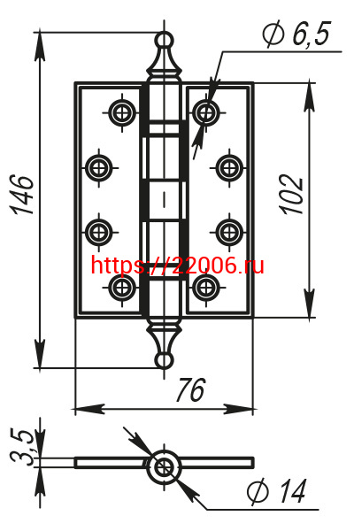 - Петля Armadillo (Армадилло) универсальная Castillo CL 500-A4 102x76x3,5 FG-10 Французское золото в Калуге недорого