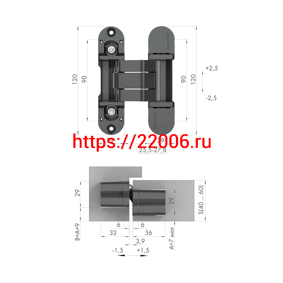 - Петля Armadillo (Армадилло) скрытой установки U3D8000.VPG SG мат. золото TECH/NO LOGO в Калуге недорого