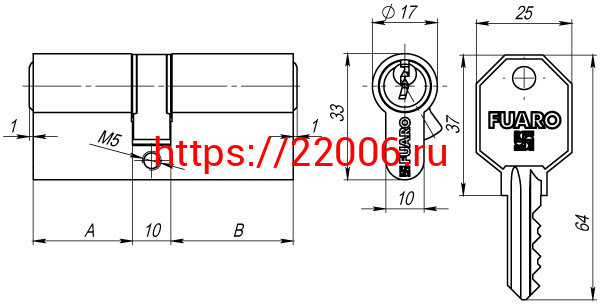 - Цилиндровый Fuaro (Фуаро) механизм 100 CA 90 mm (35+10+45) CP хром 3 кл. в Калуге недорого