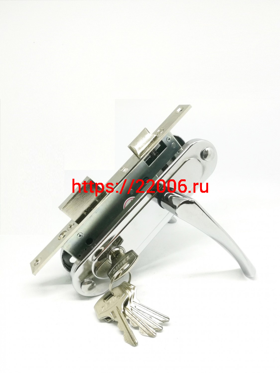- Замок Zenit (Зенит) врезной цилиндровый с защёлкой в комплекте с ручкой ЗВ7-70.4 (хром), 5 кл. в Калуге недорого