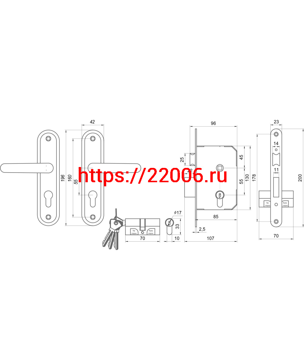 - Замок Omega (Омега) врезной цилиндровый с защёлкой в комплекте с ручкой ЗВ7.02 (медь), 4 кл. в Калуге недорого