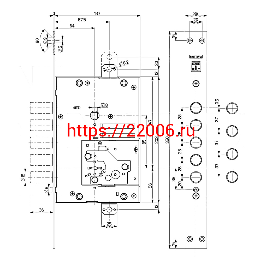 - Замок Mottura (Моттура) врезной сувальдный 52.J525M-D MyKey (правый), ключ 60 мм, без накл. в Калуге недорого