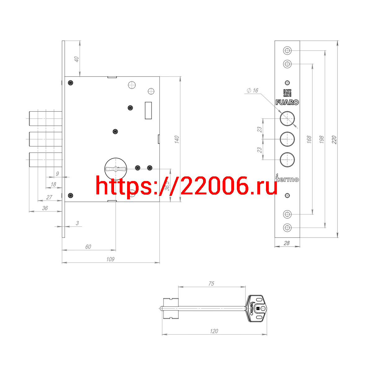 - Замок Fuaro (Фуаро) врезной сувальдный TERMO MDV25/S-60.00.3R16 4 key (ключ удл. 120/75 мм) в Калуге недорого