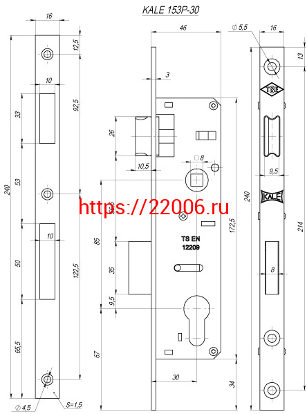 - Корпус Kale kilit (Кале килит) узкопрофильного замка с защёлкой 153/P (30 mm) w/b (хром) в Калуге недорого