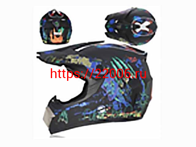 - Мотошлем VIRTUE MD-905 Кросс черный матовый с синим граффити (M) в Калуге недорого