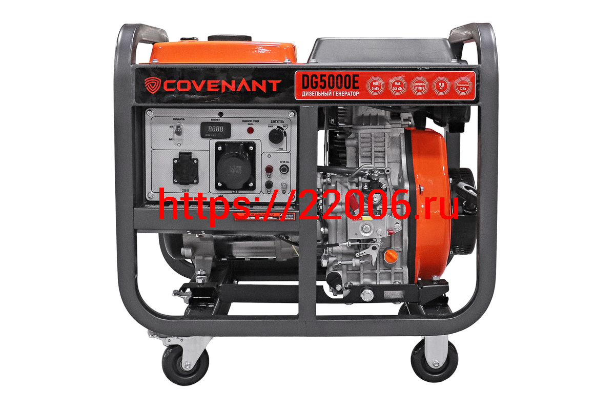- Генератор диз. "COVENANT" DG5000E (5,0/5,5кВт, LT186FA, 418cc, бак 12,5л,115кг,электростартер,МЕДЬ) в Калуге недорого