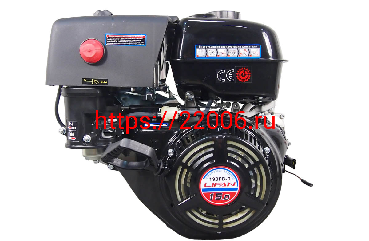 - Двигатель LIFAN 15 л.с. 190F-D (вал d25 мм) ЭЛ.СТАРТЕР, с катушкой освещения 12В 18А 216Вт в Калуге недорого