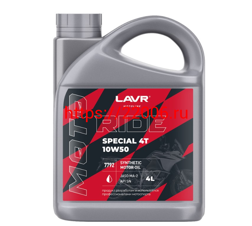 - Масло LAVR MOTO RIDE SPECIAL для 4т двиг.,синтетика, SAE 10W50, API SN JASO MA/MA2, 4литра (Ln7792) в Калуге недорого