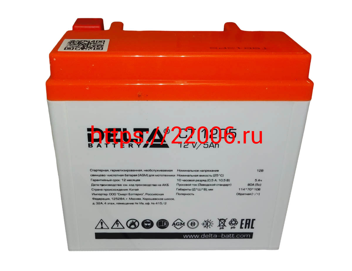 - Аккумулятор 12В 5 А/ч, кислотный AGM (Delta СТ 1205) (113х70х106) обратная полярность, для Альфы в Калуге недорого