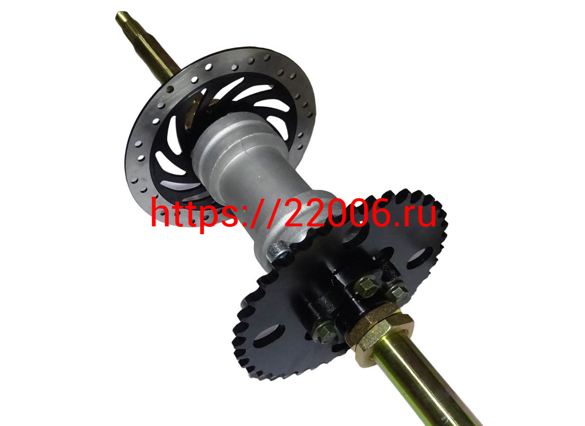 - Ось задняя ATV Jaeger 2 в сборе М20*810мм (корпус поднипника, диск тормоза, звезда) в Калуге недорого