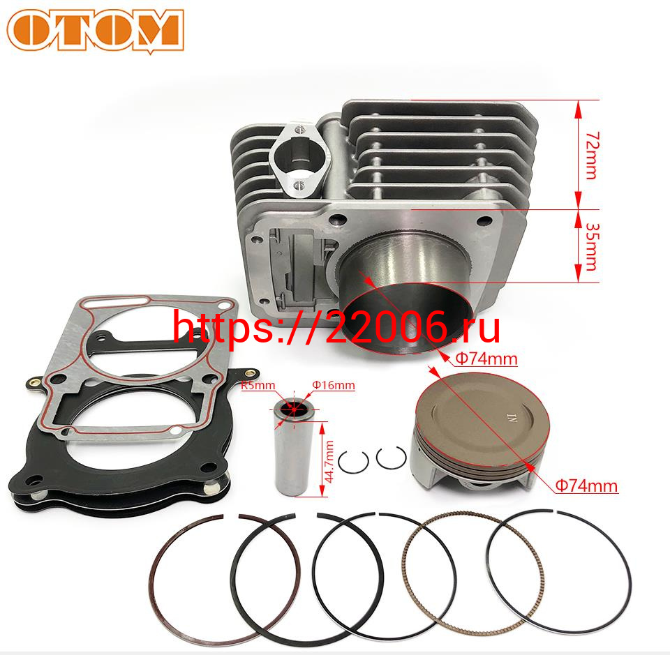 - Цилиндр в сборе с поршнем ZS172FMM-3A, 74мм, тюнинг ZS174FMM (CB250-F) (big bore) OTM в Калуге недорого