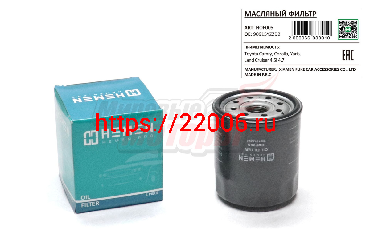 - Фильтр масляный Toyota Camry, Corolla, Yaris, Land Cruiser 4.5i 4.7i (HOF005) в Калуге недорого