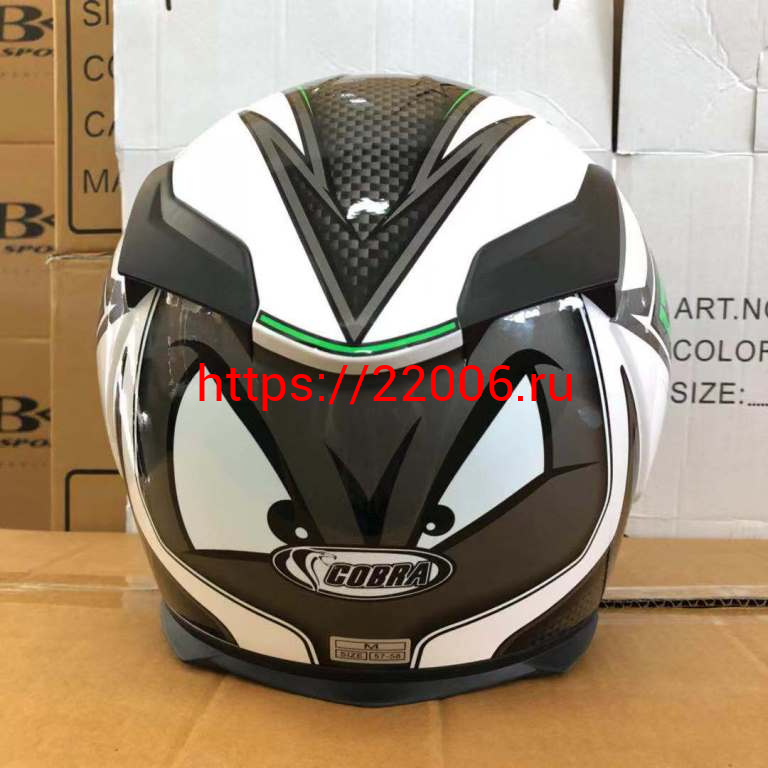 - Шлем интеграл COBRA JK311, белый с черным и зеленым(9), размеры L в Калуге недорого